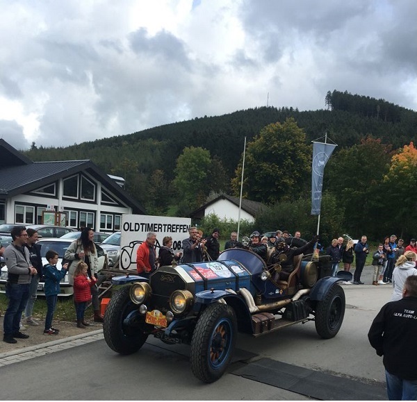 Für ca 2 Stunden werden die alten Autos nacheinander zur Wertungsprüfung eintreffen und dann weiterfahren.
