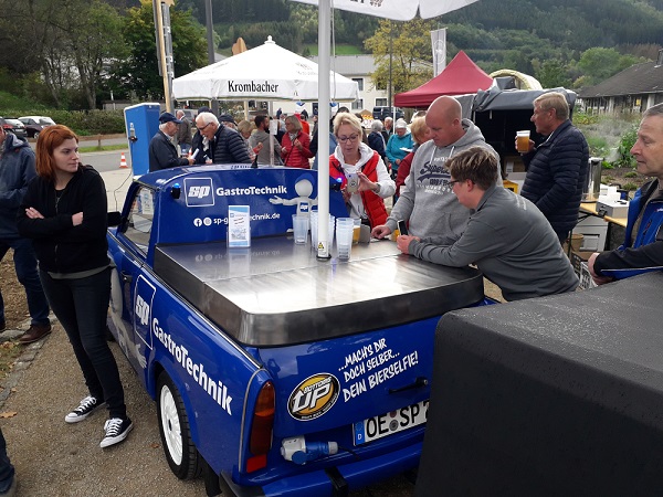 Ein Trabbi als Bier-Theke - mit Bottons Up-Technik